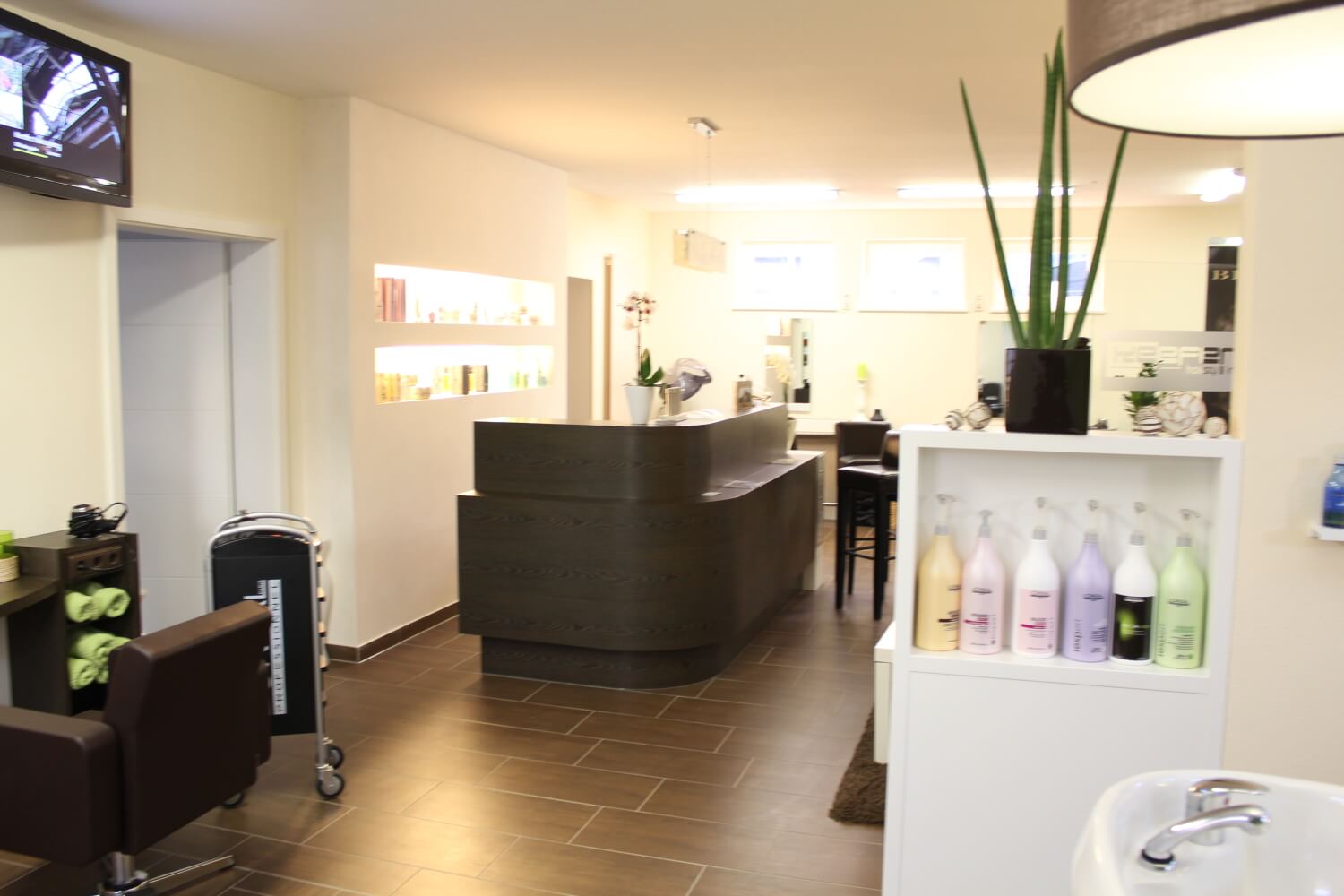 Stylisch, modern und praktikabel wurde dieses Haarstudio ausgestattet.